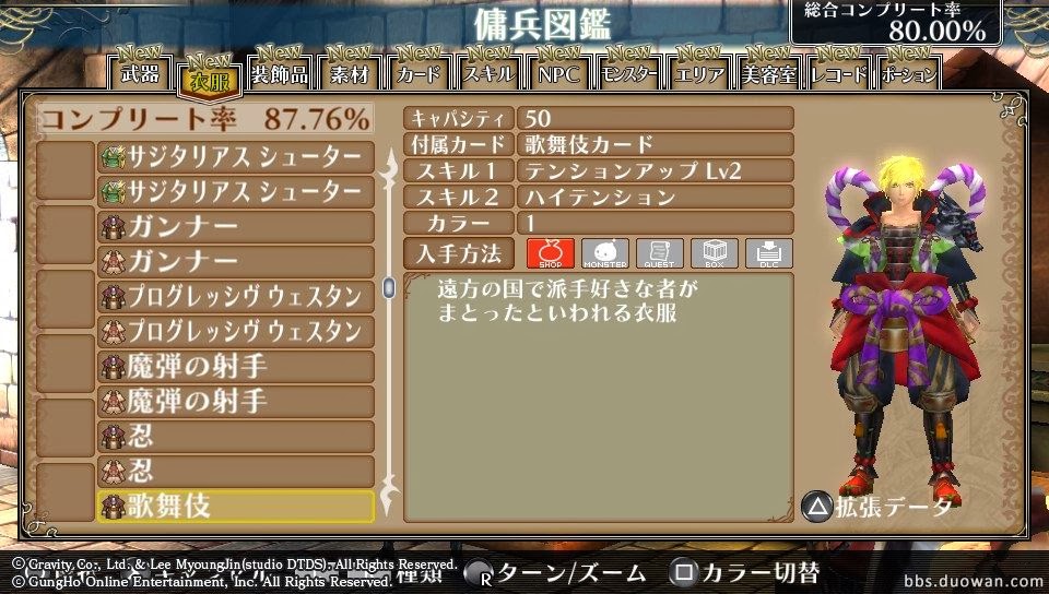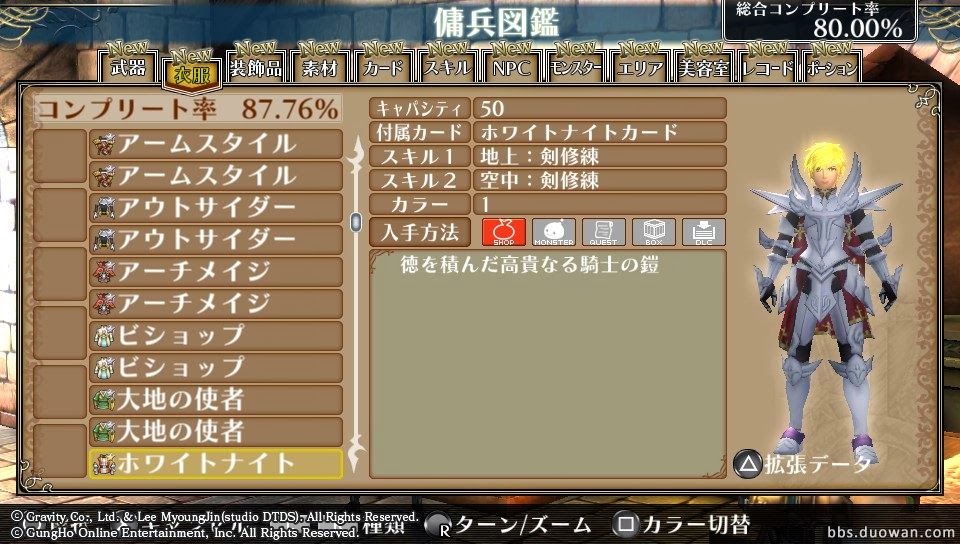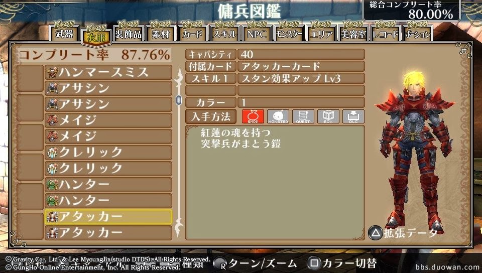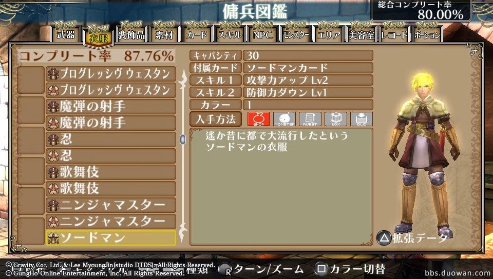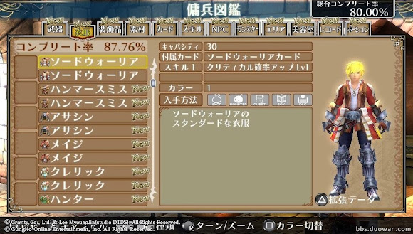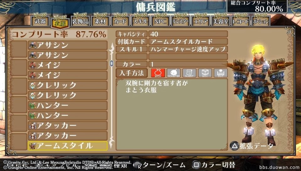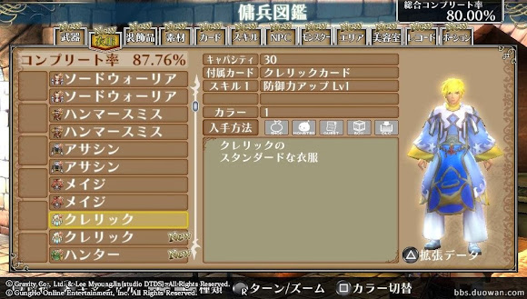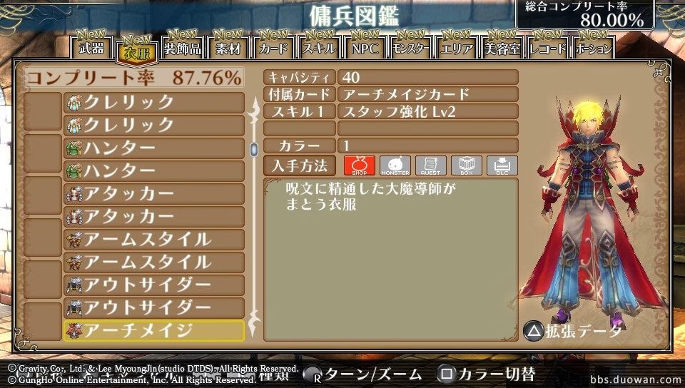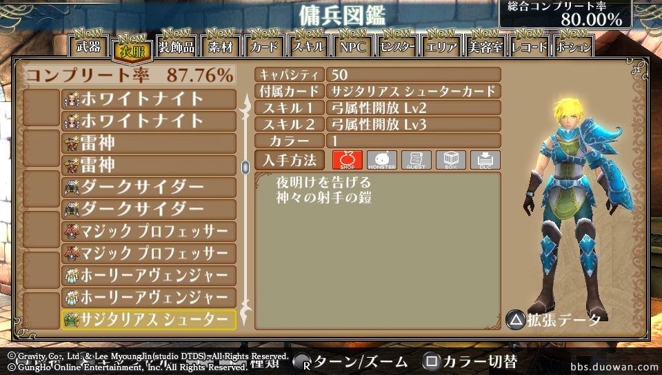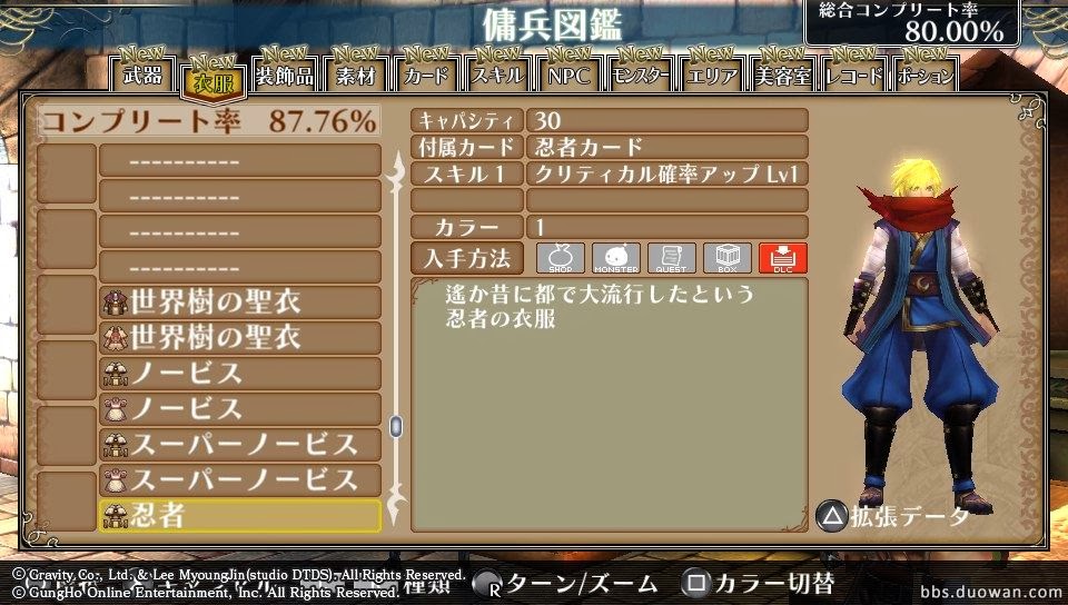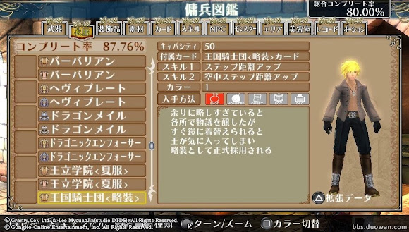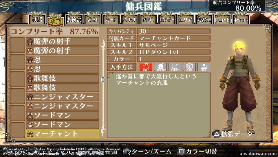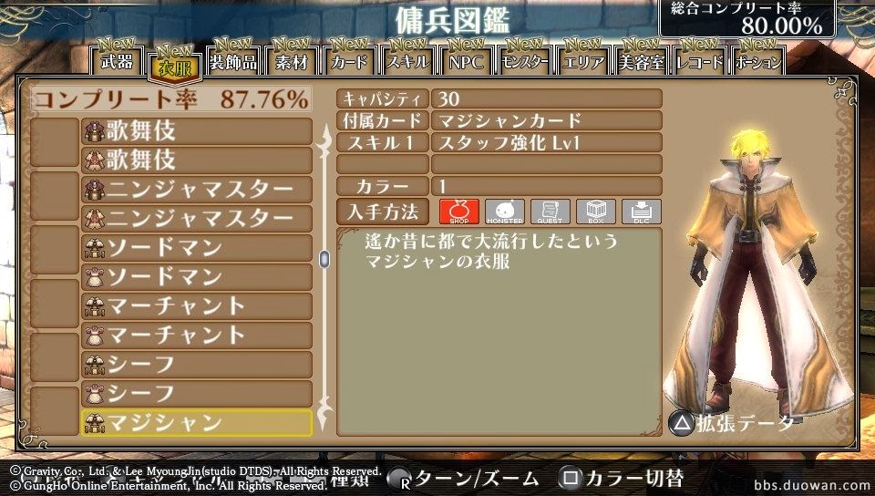 仙境傳說 奧德賽 ACE 男性服裝圖鑒