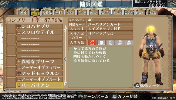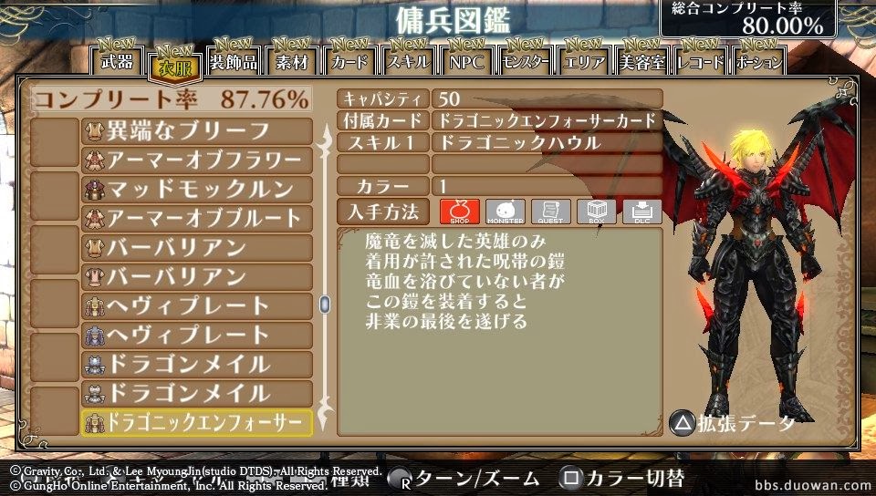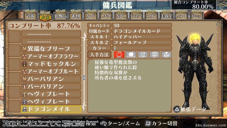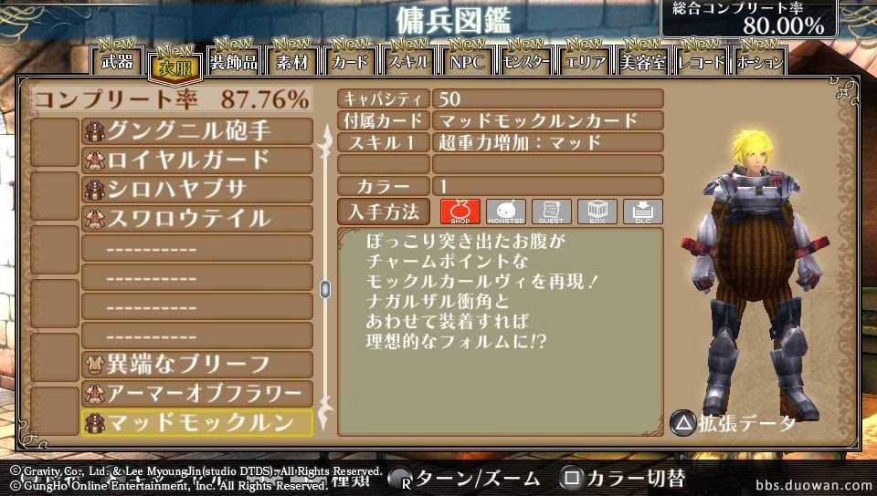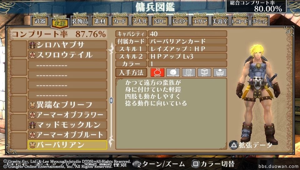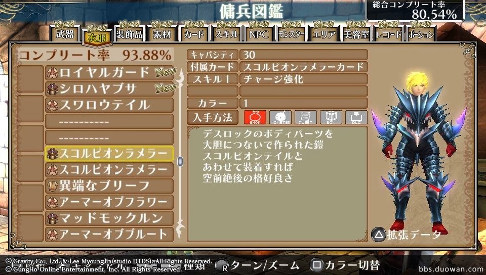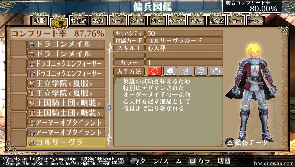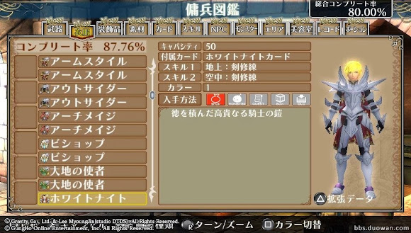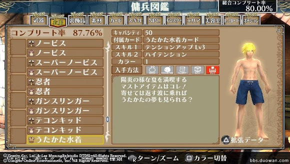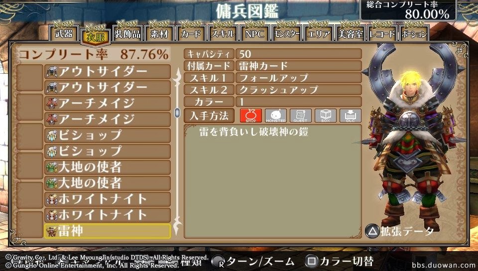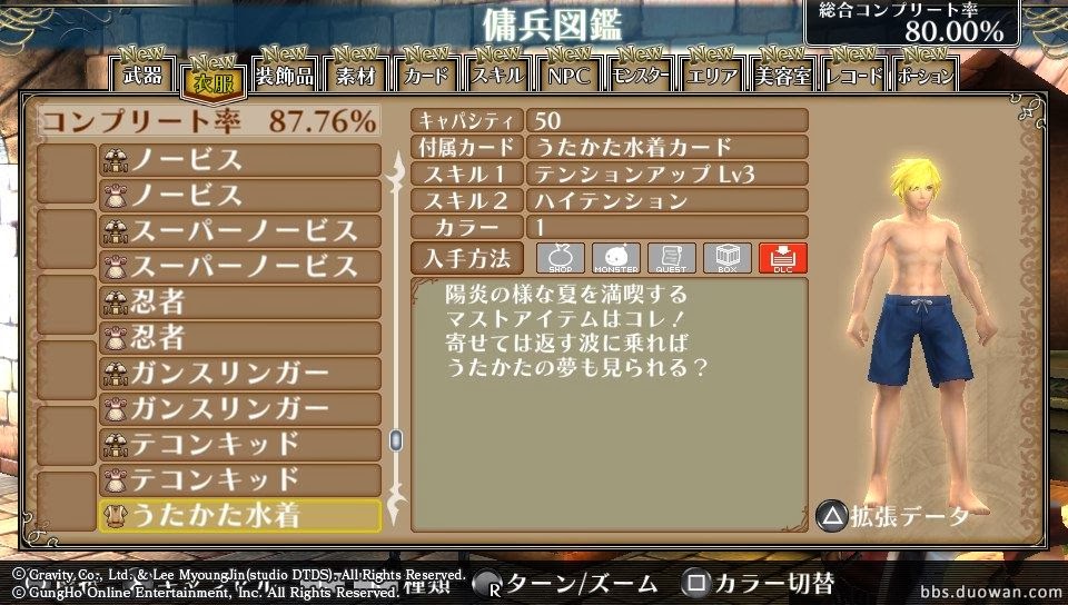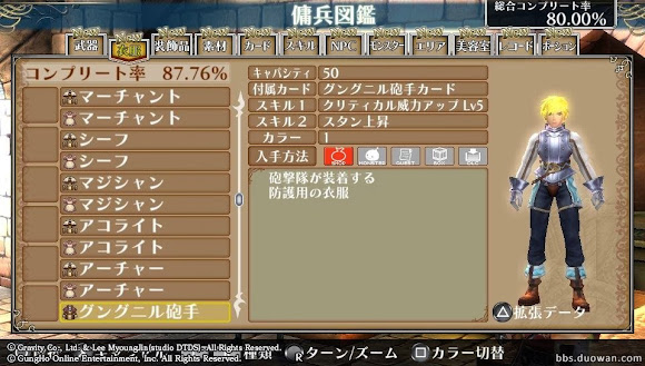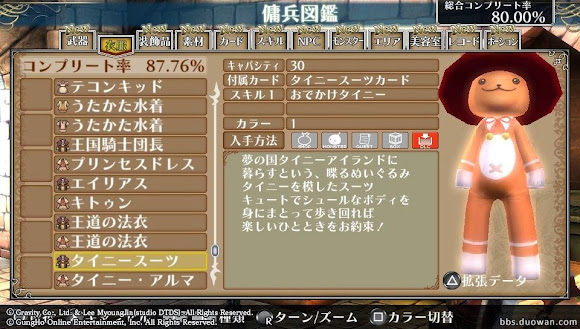 仙境傳說 奧德賽 ACE 男性服裝圖鑒
