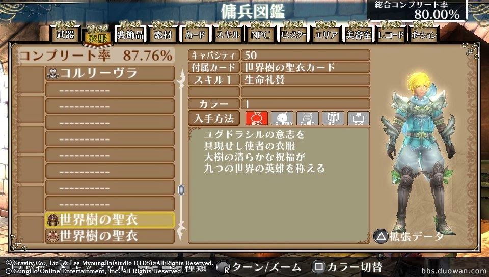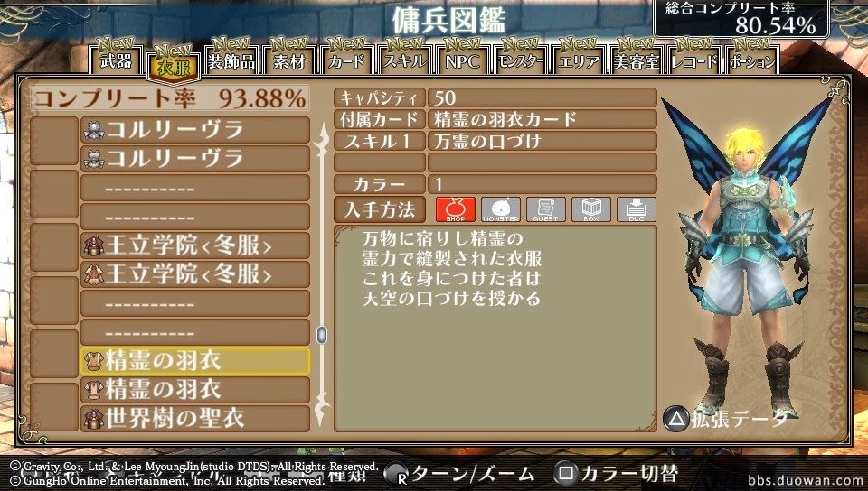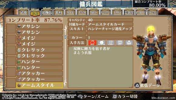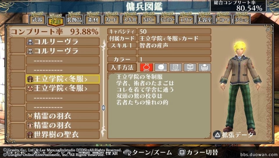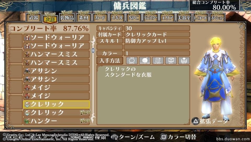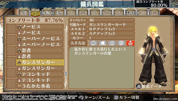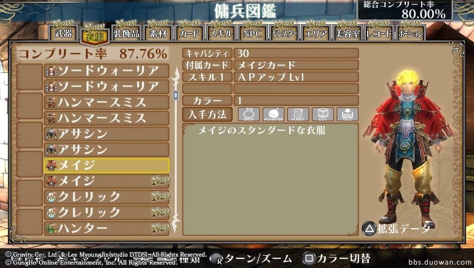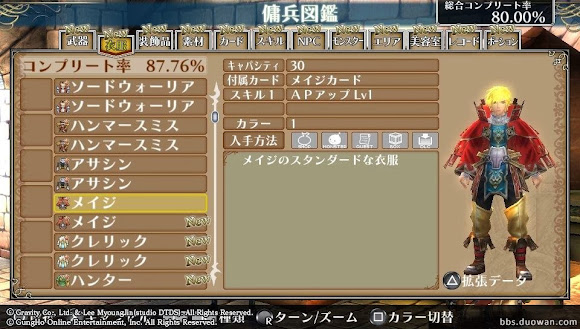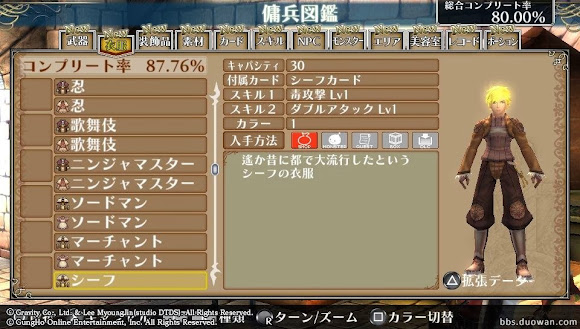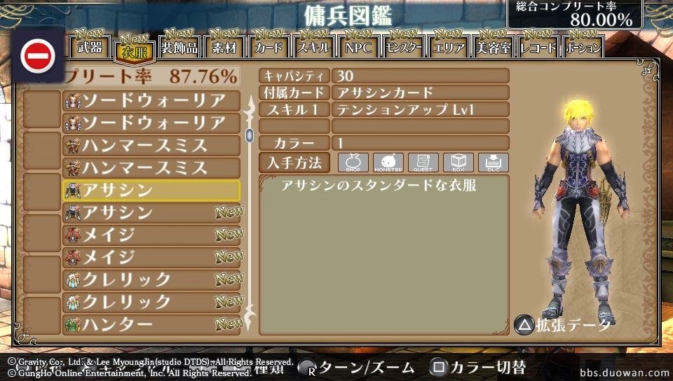 仙境傳說 奧德賽 ACE 男性服裝圖鑒