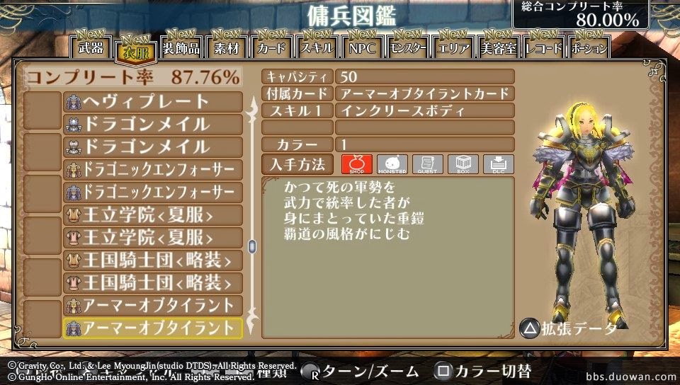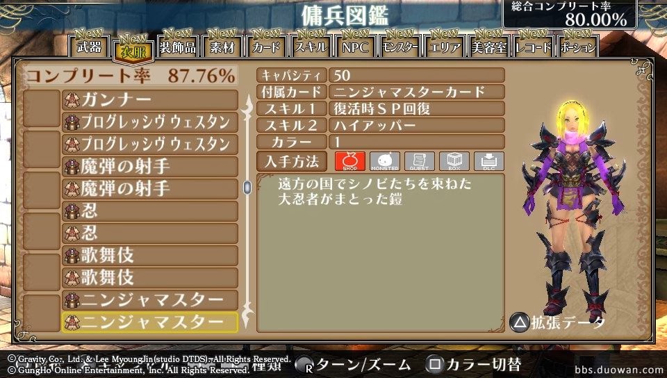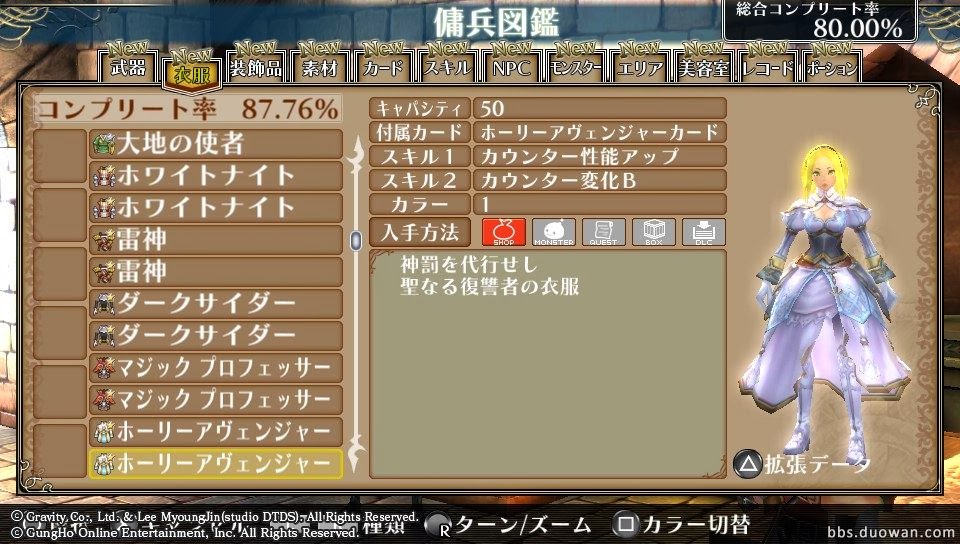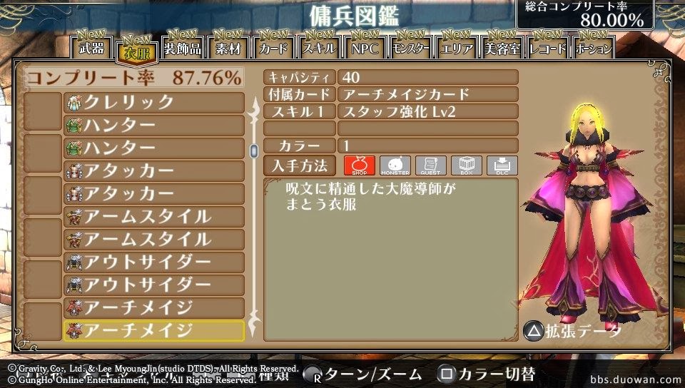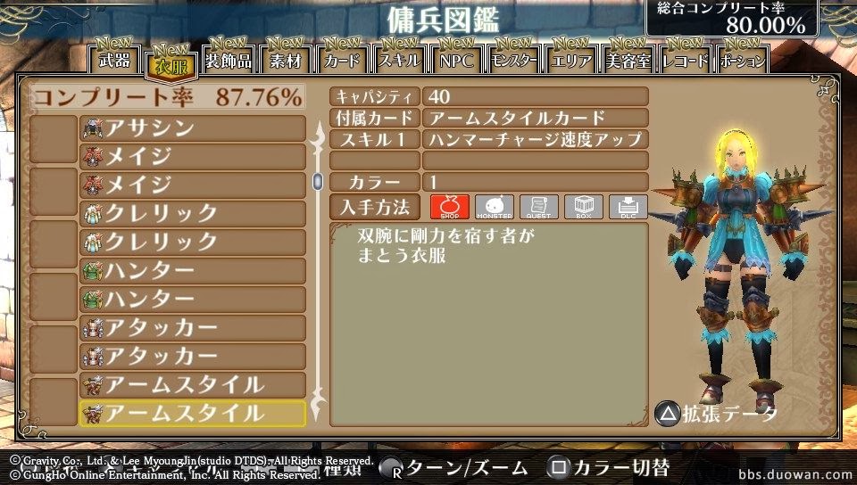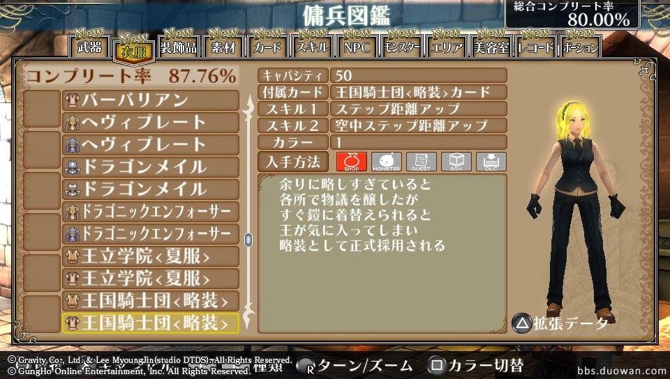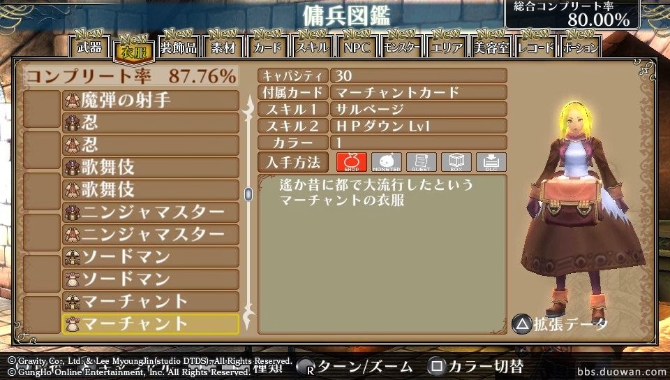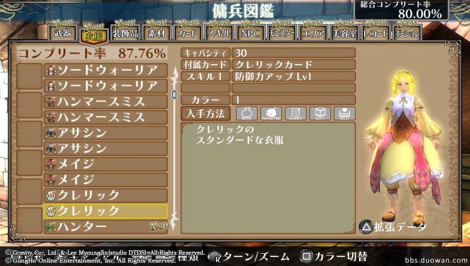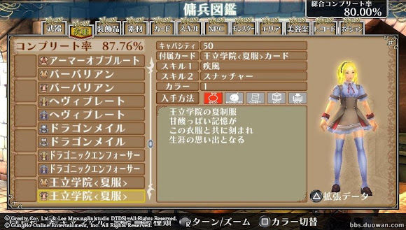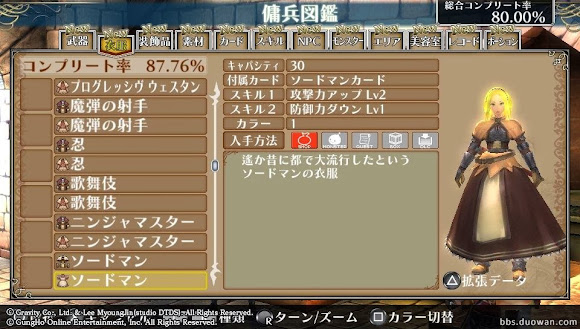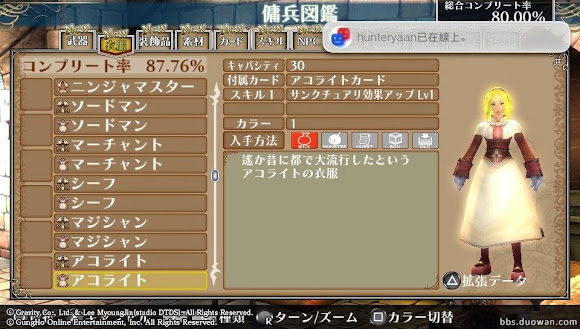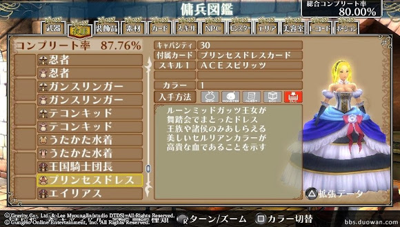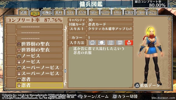 仙境傳說 奧德賽 ACE 女性服裝圖鑒