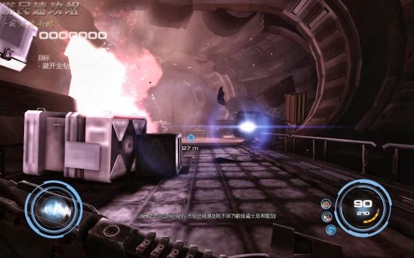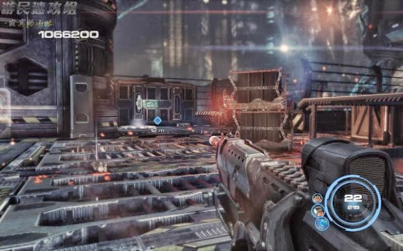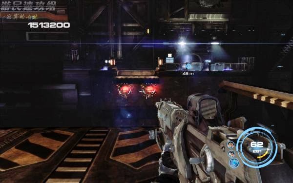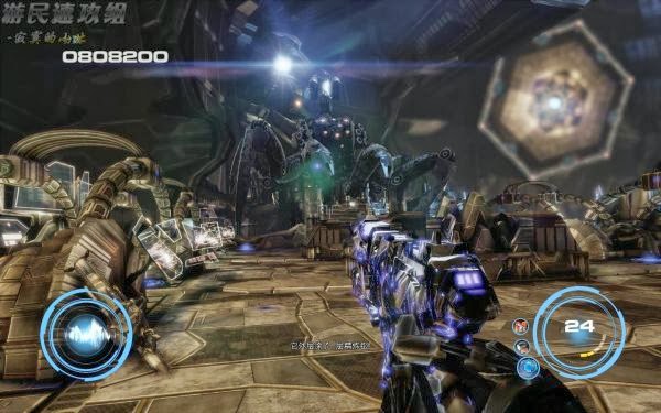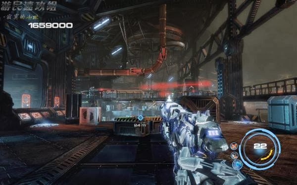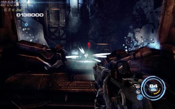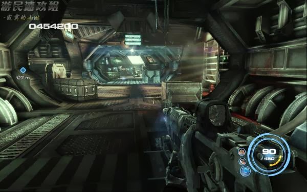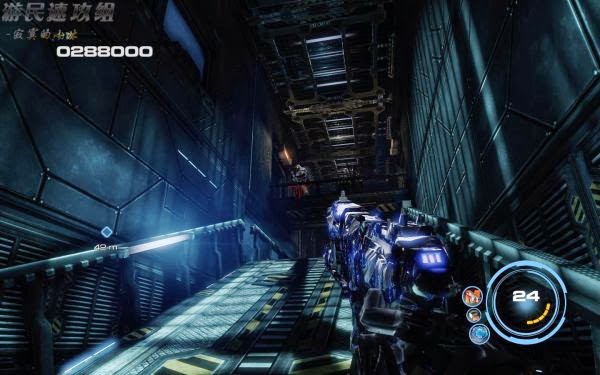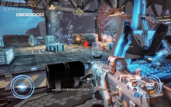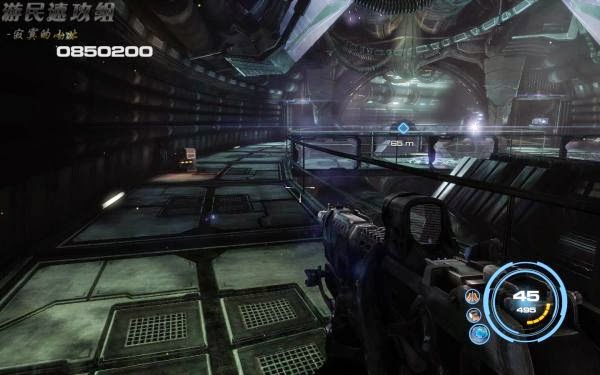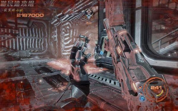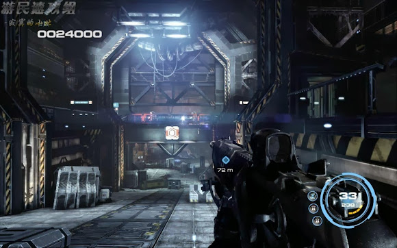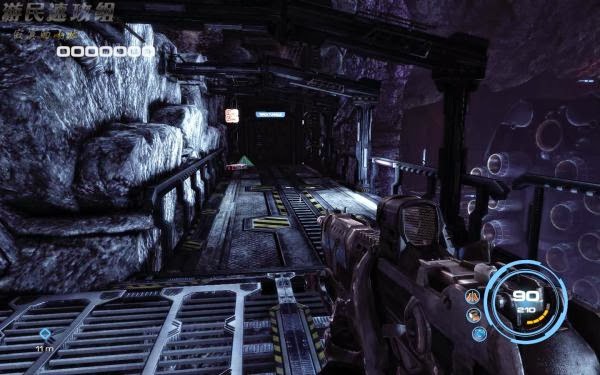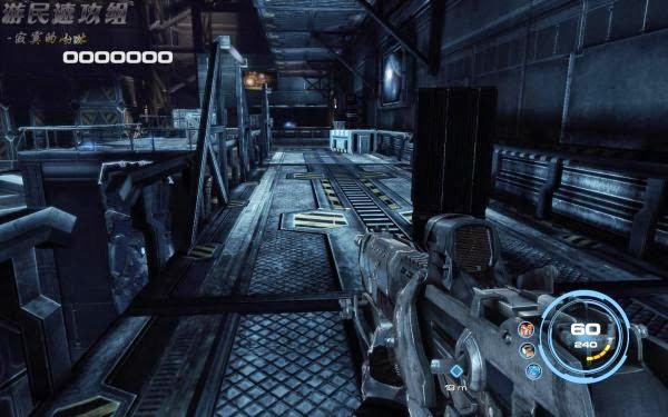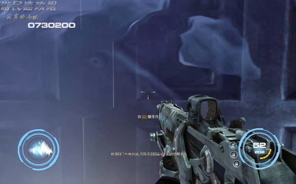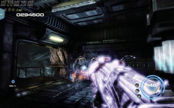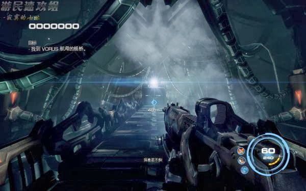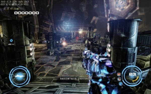 剛開始系統會提示我們遊戲的一些基本操作,該遊戲的操作跟一般的FPS遊戲差不多,WASD為移動鍵,滑鼠左鍵為射擊,右鍵瞄準,按下滑鼠滾輪或c鍵可以扔手雷(能量武器),按住shift鍵可以奔跑,在奔跑狀態下按F鍵可以滑行。