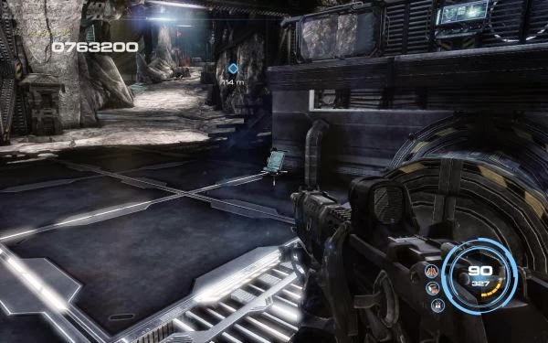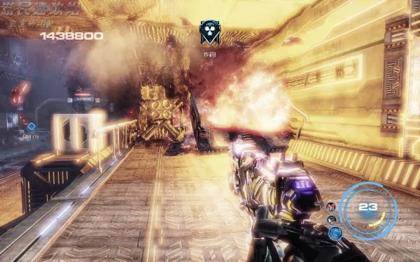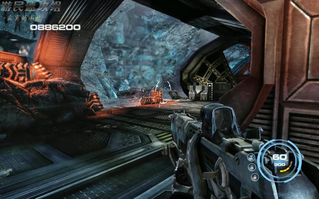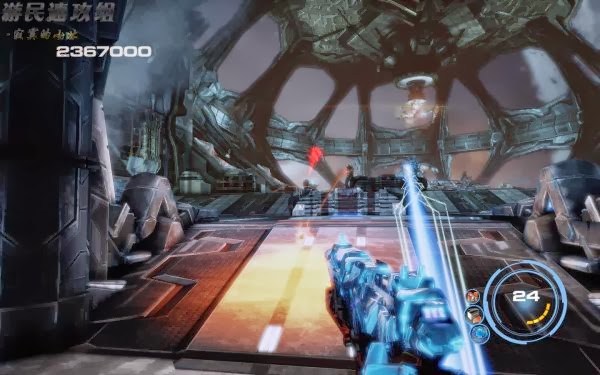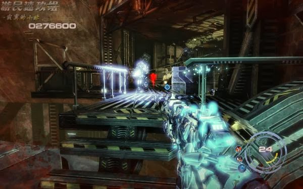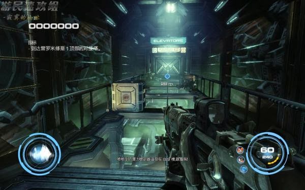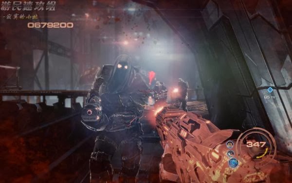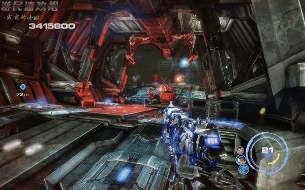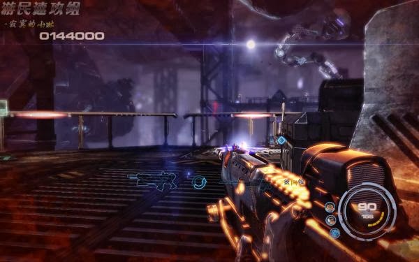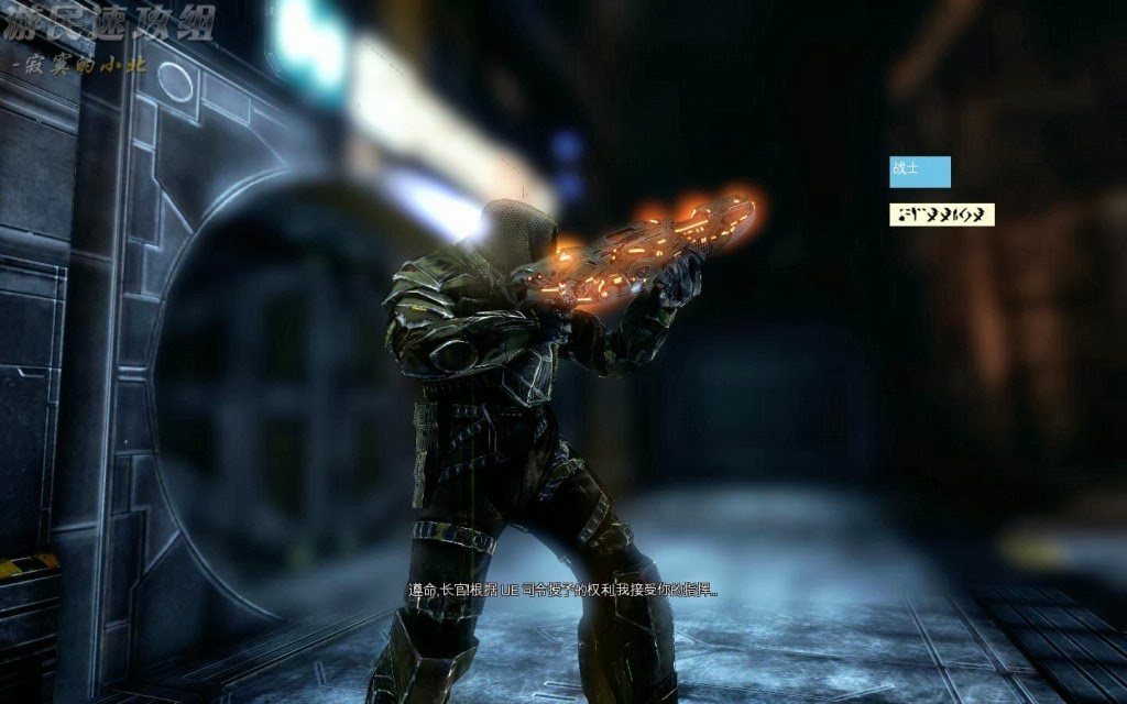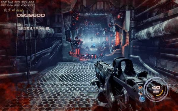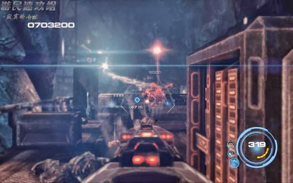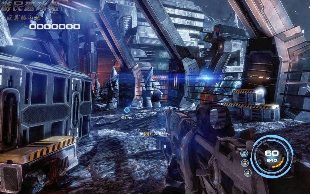 剛開始系統會提示我們遊戲的一些基本操作,該遊戲的操作跟一般的FPS遊戲差不多,WASD為移動鍵,滑鼠左鍵為射擊,右鍵瞄準,按下滑鼠滾輪或c鍵可以扔手雷(能量武器),按住shift鍵可以奔跑,在奔跑狀態下按F鍵可以滑行。