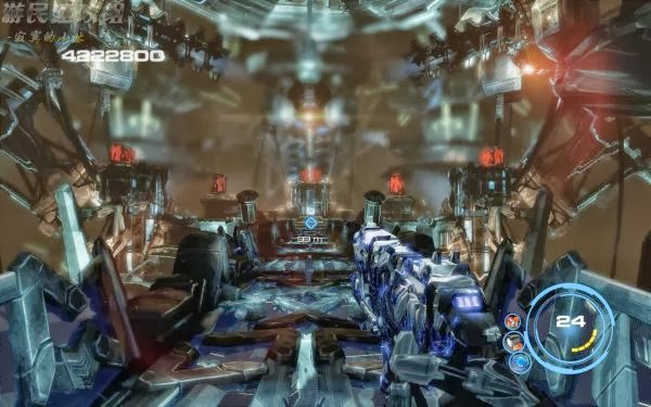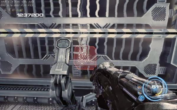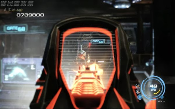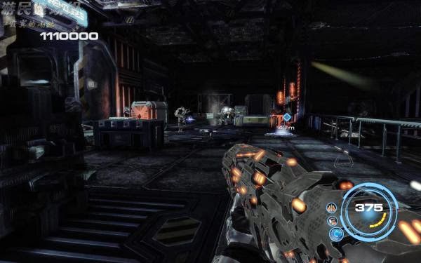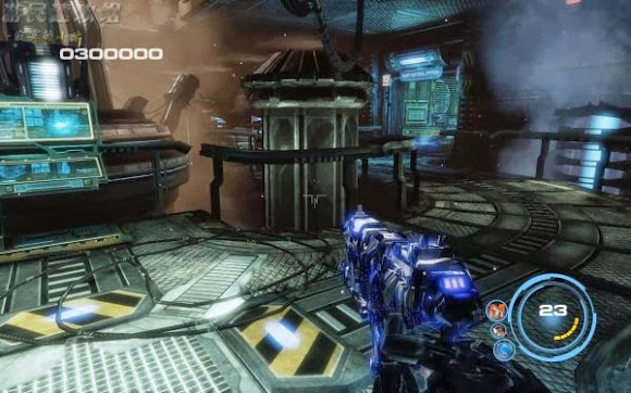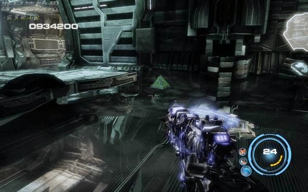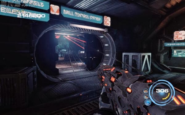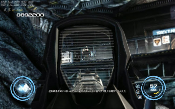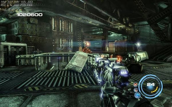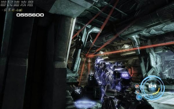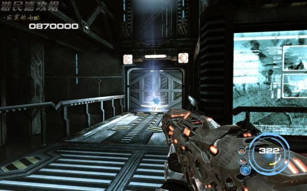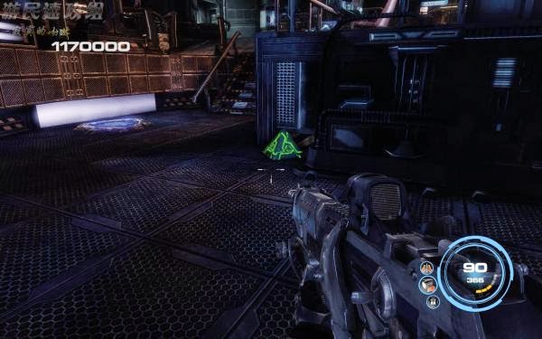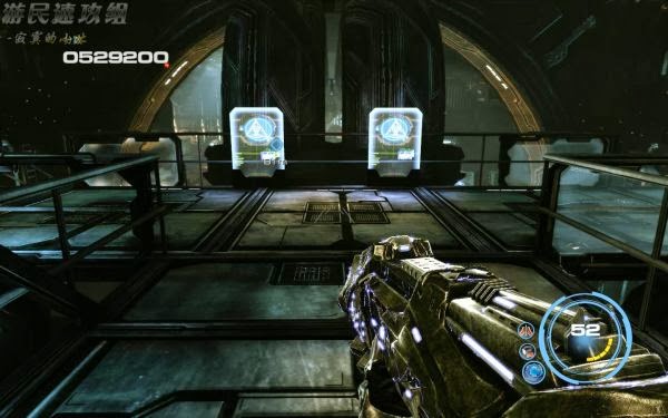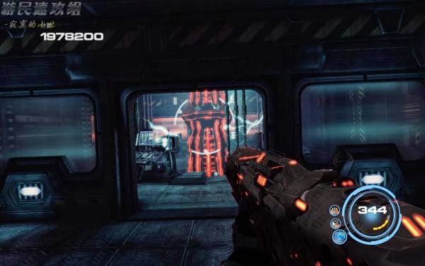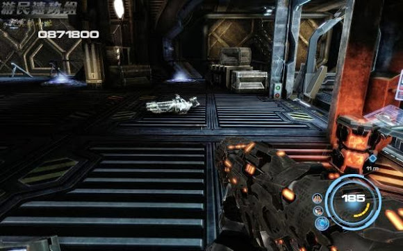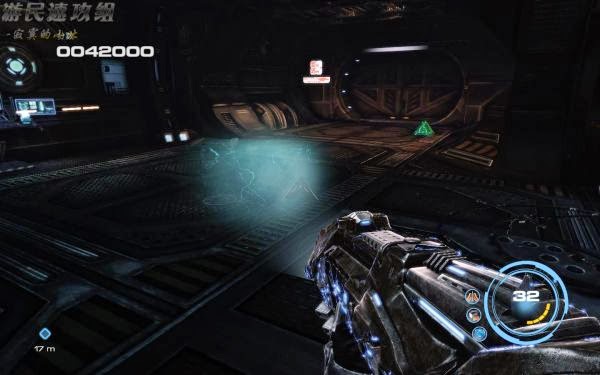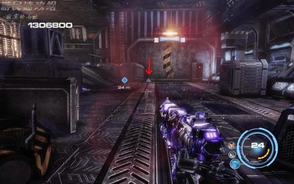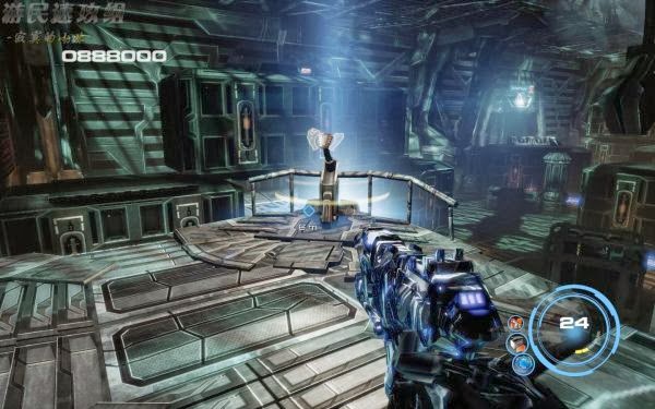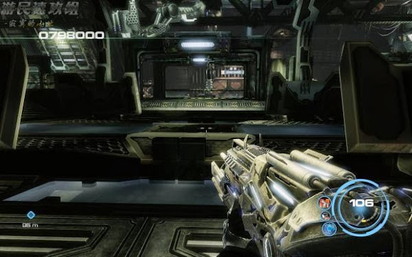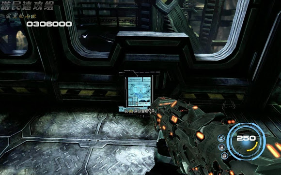 咋們的主人公在一個控制台上瞎搞一陣之後,不小心啟動了控制室的防禦系統,天花板上陸續伸出了幾個炮塔對著我們猛射(不作死就不會死啊)。只要一發榴彈可以解決一個炮塔。