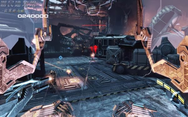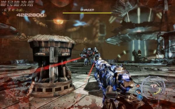 打完boss後繼續前進會遇到一個新兵種“精英”。把他幹掉後可以拾取他掉落的鐳射槍玩玩,這支槍威力尚可而且無需換彈夾無需冷卻,不過子彈消耗得挺快。