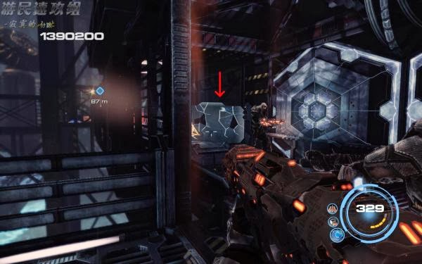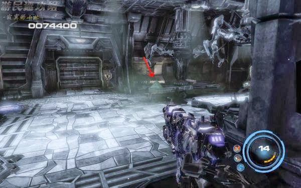 把該區域的敵人清光後破壞本區域的一個控制台,接著出現一隻機甲巨蛛。