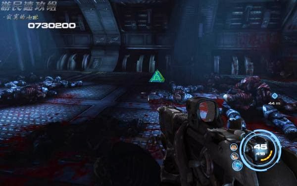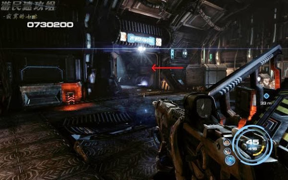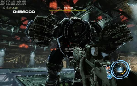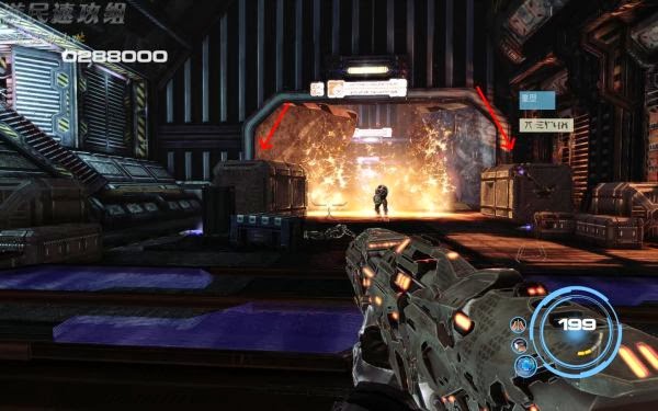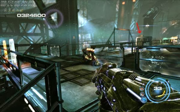 本章的BOSS是一個拿重機槍的外星巨漢。扣掉他一部分血後,他會開始不斷的扔榴彈。跟他正面交鋒必死無疑。