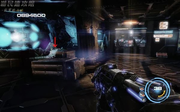 來到上圖中的位置時會從前面的房間中走出兩個敵人,解決敵人後進到那個房間裡面可以找到一個獎勵盒子。
