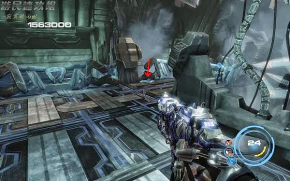 從機甲上下來後即可到上圖中的位置拾取本關最後一個獎勵盒子。