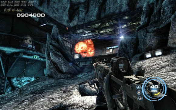 繼續前進遇到了一個新的兵種——投彈兵。這種敵人會不斷地向我們發射榴彈,非常討厭,要是你反應迅速槍法神准的話最好先把他們點掉,槍法一般的遇到投彈兵還是龜一點比較保險。然後射爆這個場景中的炸藥可以引起連鎖爆炸秒殺一片。