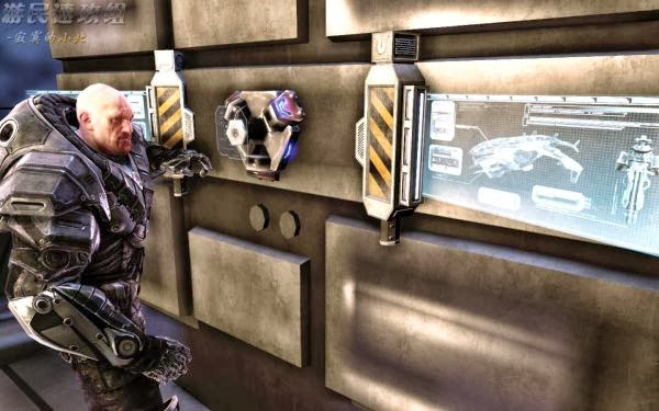 同學們注意啦!這裡可能會遇到一個bug。外面不是槍林彈雨的嗎,有些同學可能比較沒種(好吧,我就是,否則也不會發現這個bug)不敢出去,而想要躲在這個房間了把外面的敵人射死再走。可是但你結束戰鬥去到對面想要乘升降機去到上面的時候,你會發現升降機的啟動鈕是紅色的(如上圖)而且根本無法按e鍵互動。