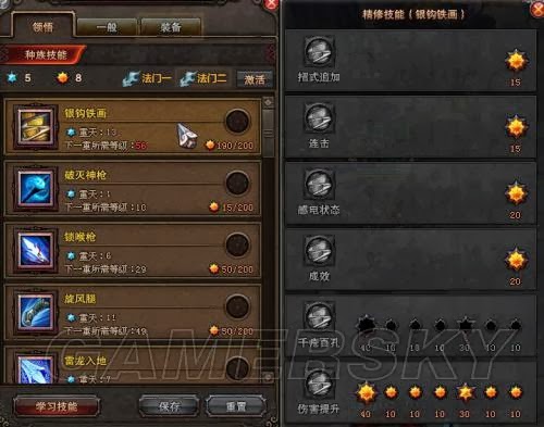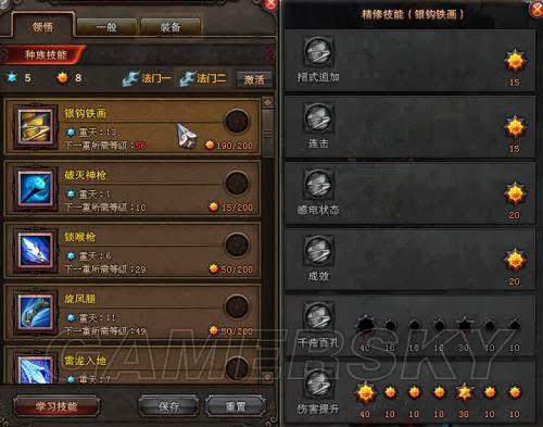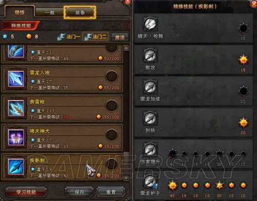 破滅神槍:這個技能主要是用於追殺和移位,點上斷筋足矣。使用時需要很強的預判能力,只要打中立馬接銀鉤或是奔雷。