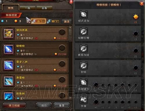 鎖喉槍:一點天賦 一點精修足矣。 我點招式追加,用於跑圖,刷新CD,移位都不錯。(也可以不點,看自己喜好)