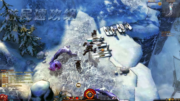 繼續,下一個boss,這個boss分為2個階段,第一階段,大多數時候用普通平砍,但由於範圍較大也比較有威脅,建議用空格閃避,要注意體力值。然後他會放冰錐,冰錐打到很疼,但是地面上有標記,很好躲開。快掛了進入第二階段,場景中會出現很多小怪給他回血,你要把這些小怪一一清理,之後才能傷到BOSS,然後回到第一階段繼續打。