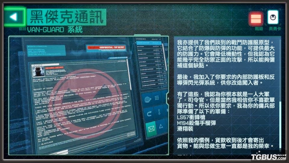 第六份:關押上將的前一個辦公區域,武器箱對面房間內有大螢幕,旁邊即情報終端。
