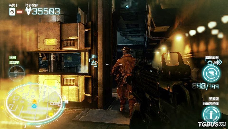 軍官擄走賈思提,救回來。把軍官打受傷別急著盤問,緊接著電梯下來走出一名火焰噴射兵,電梯門開一瞬間沖進去扭脖子或者手雷你們看著辦吧。轉過頭再好好料理這名軍官。順帶一提,軍官所站位置旁邊有幹 擾 裝置。不過被牆體擋住,一開始爬上纜繩的位置無法瞄準破壞。