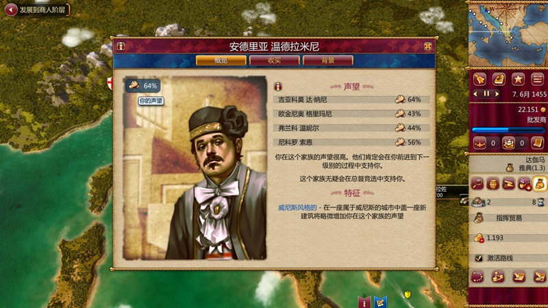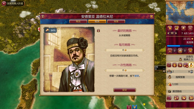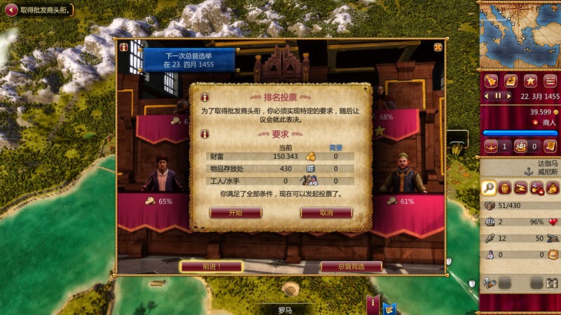 當你達到貿易要求後,你就能提升商貿等級了,而商貿等級同時也是政治等級。