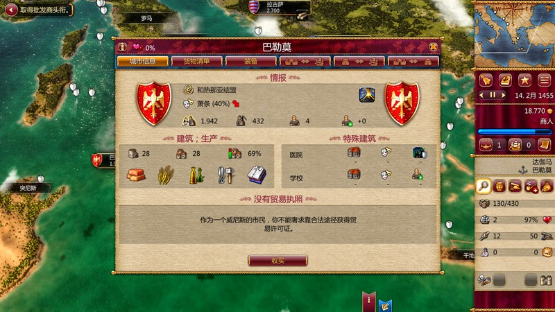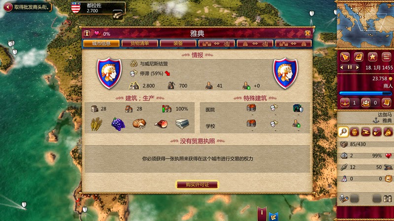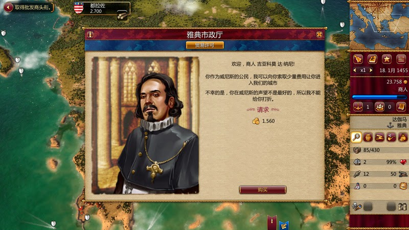 為了更豐富的貿易線路,找到新的城市就購買許可吧。