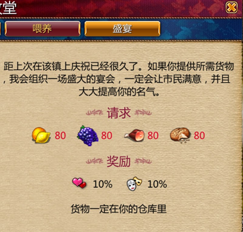 通過提供宴會所需的原料舉辦盛宴,可以大幅度提高聲望和民眾好感度。
