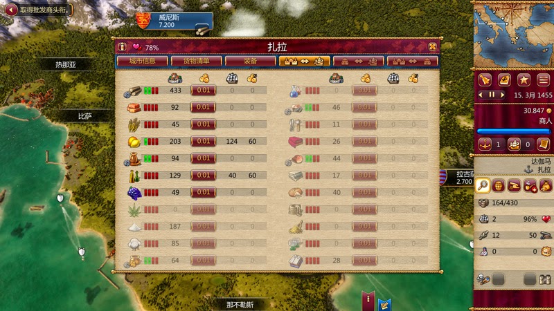 貿易介面詳細的羅列出了城市可能的交易物資。