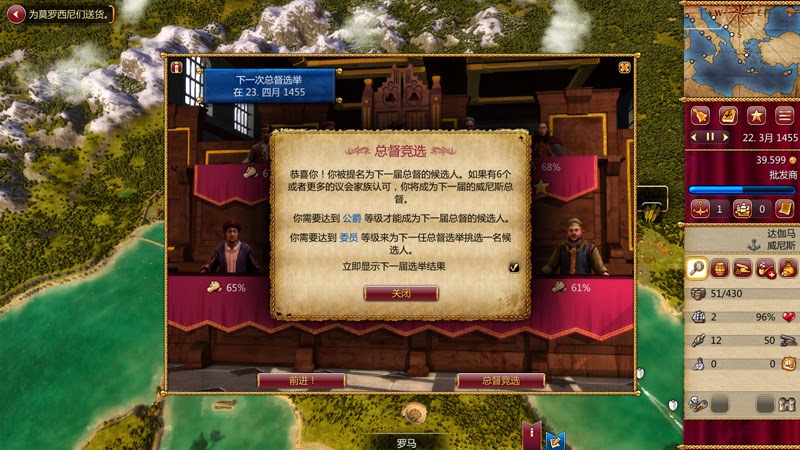 要提升商貿等級,需要到威尼斯的議會,也就是著名的十人會。