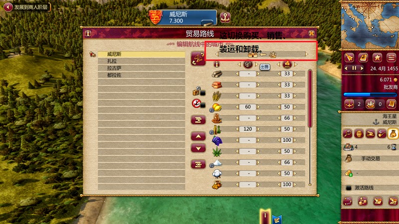 同樣,你的船隊相應的物資存量和價格也會標示其中。