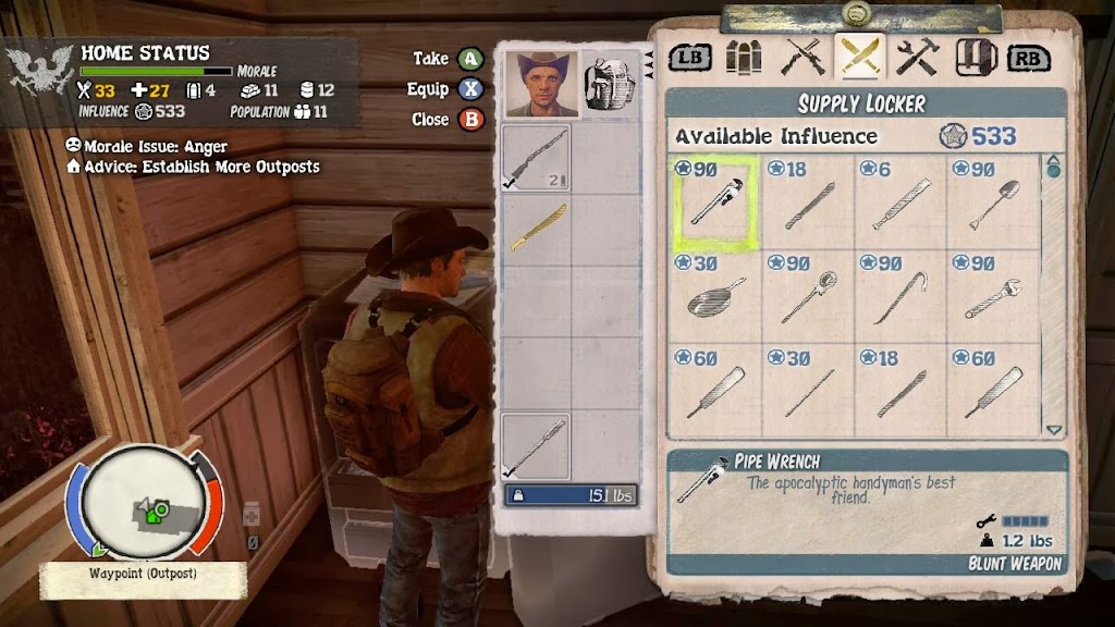 最後就是的任務就是建造一個大型的營地了,這個任務比較麻煩,要收集很多的建築材料,不過好在這些材料還是蠻多的,到處找找就可以找到了,不同的建築物建造的時間也是不同的,有些建築物建造的速度很快而有些就較慢,越慢的建築需要的材料越多,而建造出新的建築之後又會有可以升級的建築,而早了不想要的建築就在該建築選項上長按X abandon spot (拋棄據點)建造據點的話,不同建築不同錢,遇到資源之按Y後選擇“radio home”,然後選第二個。第一個的話是叫人來拿物資。多建造大型的據點可以是安全範圍大大增加,就不用擔心晚上出去都是僵屍的地盤了。