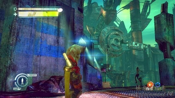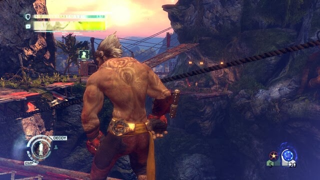 路上清理幾個敵人,高處可以按E抓住三藏在按空格扔上去,然後會遇到機槍兵偷襲,這裡自己先跑,然後命令三藏跑,自己吹口哨,等三藏道門前後自己從樓下牌子爬過去砸掉機器人。