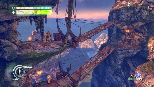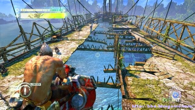 最後跳過橫杆遇到女主角,這裡橋開始墜落。必須快速讓兩人通過,第一個地方先仍女的,在按E拉上來,第二個地方有和第一個一樣,第三個地方別扔,直接帶著一起跳,這地方死了要從新來很坑加之視角問題比較麻煩,多嘗試幾次就能來到橋面了。