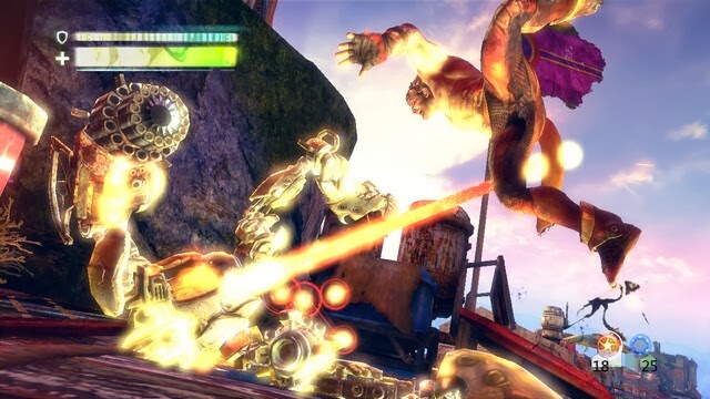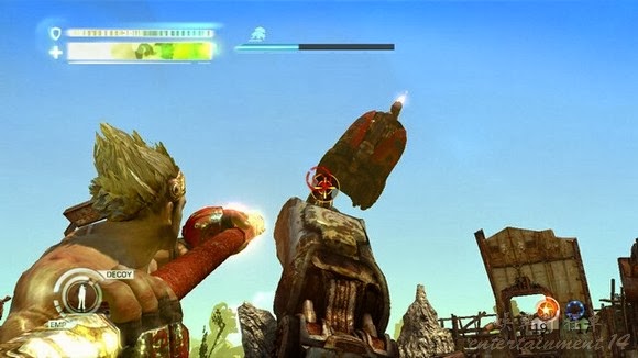 這裡先做掉幾個敵人便可以回到前一關那個有很多機器人射你的場景。