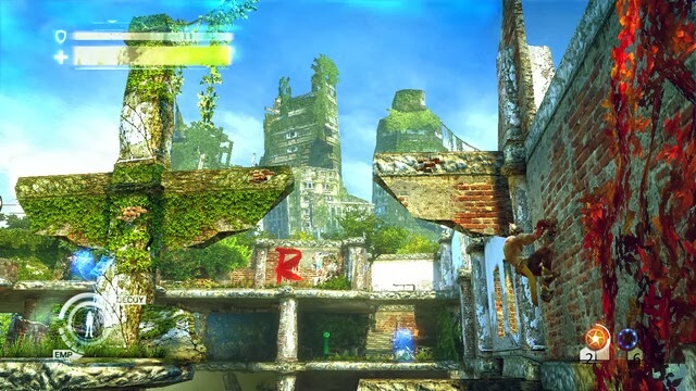 自己從斷牆壁爬上去。注意上面有個電光機器人,這貨傷害特別高,而且無視護盾,近戰無法打暈,只能閃避+快速解決省的夜長夢多。