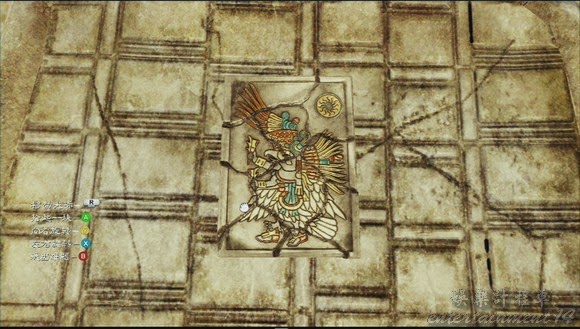到一扇門口發現大門不開,之後女主角給玩家一個寶石(看上去好值錢= =|||)按在門上,門開後發生劇情。劇情結束後,主角一個人行動,走到一處地板上畫有圖案的地方後仔細看地板,眼睛的符號代表安全的,蛇的符號代表危險,使用筆記本可以發現這點。接著到一扇門前,轉動門右邊的轉軸至眼睛圖案,們就會打開。